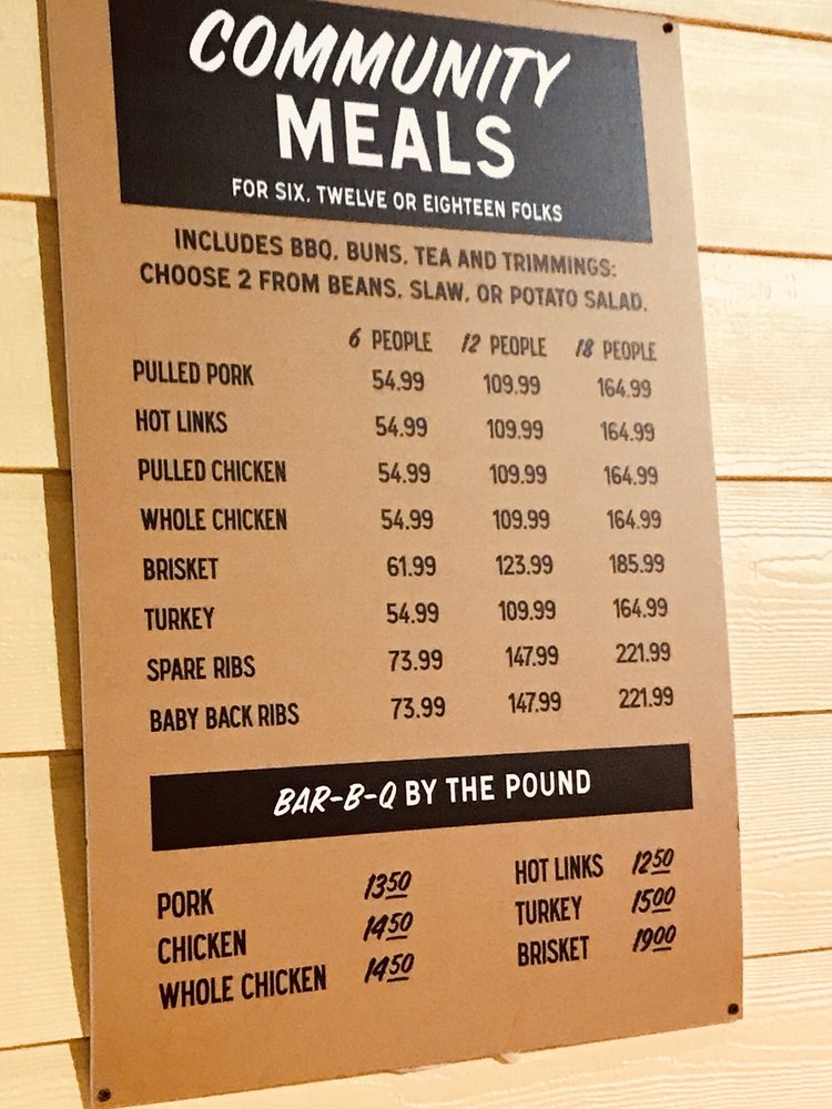 Beef brisket, smoked for 12 hours and served sliced with 2 trimmings.